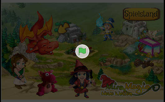 Zuerst musst du auf die grüne Fahne in der Mitte klicken, dann erscheint die Startseite zum Spiel.